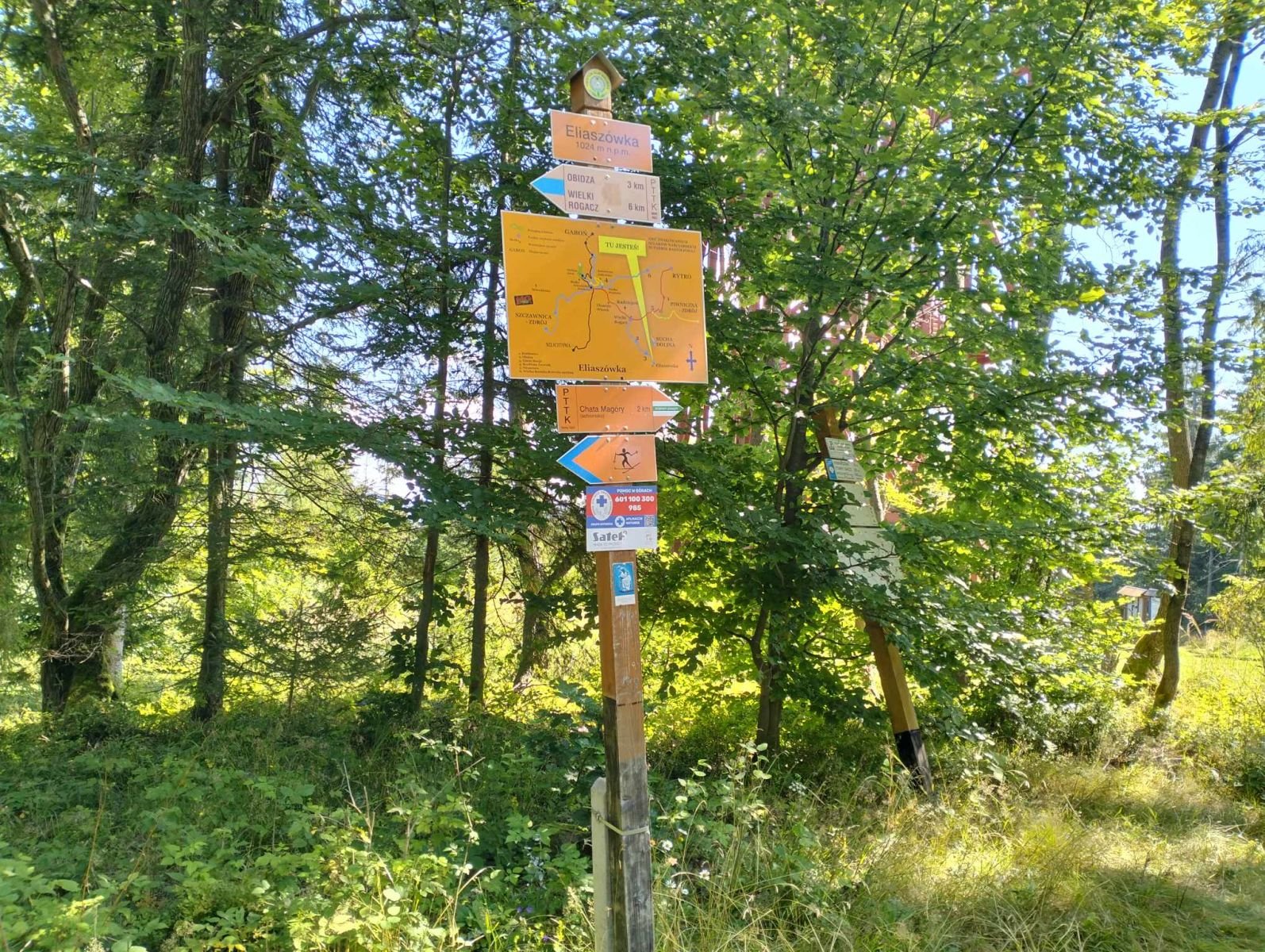 Eliaszówka to najwyższy szczyt Gór Lubowelskich w Beskidzie Sądeckim 1023 m n.p.m. Na szczycie góry możemy wejść na 20 metrową wieże widokową. Wieża z której nie ma efektownych widoków. Przy wieży są ławeczki, miejsca do biesiadowania. Dostaniecie smsa, z powitaniem na Słowacji. Szczerze na wieże nie wychodziliśmy...chwila przerwy na pobliskiej ławeczce.