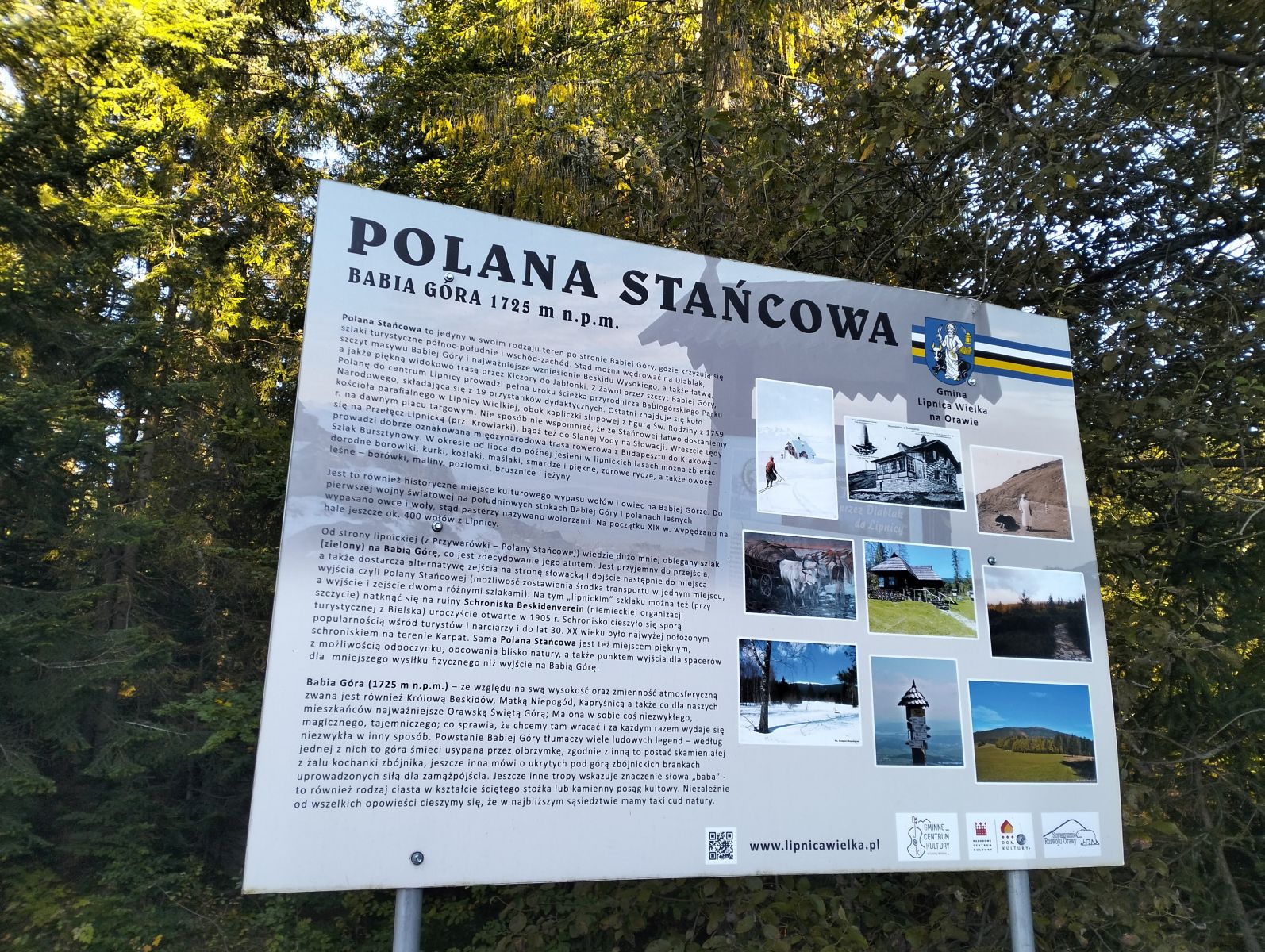 Dochodzimy do Polany Stańcowej, upewniamy się, że ta polana to jest to co widzimy na tych tablicach. Nie ma tu żadnych widoków, kawałek polany, dookoła las. Tablica ma tyle informacji, że z 20 minut można czytać ;)
