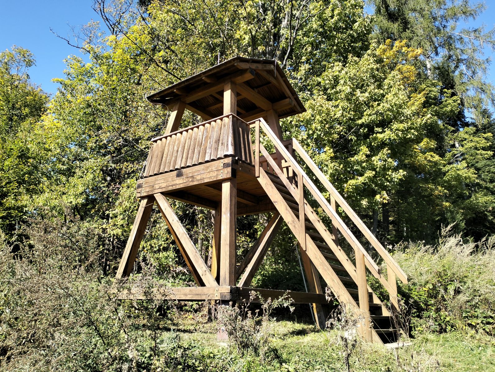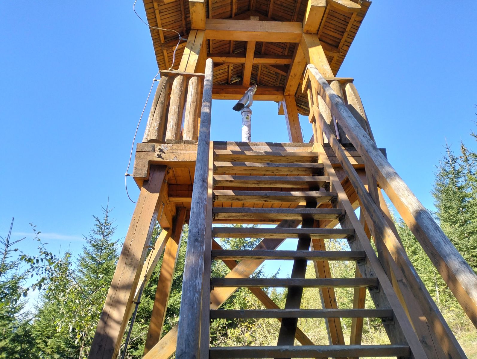 Wieża widokowa na wysokości nie znacznie ponad 1000 metrów nad p.m. z przyrządem gdzie możemy obserwować ze zbliżeniem nie tylko Tatry.