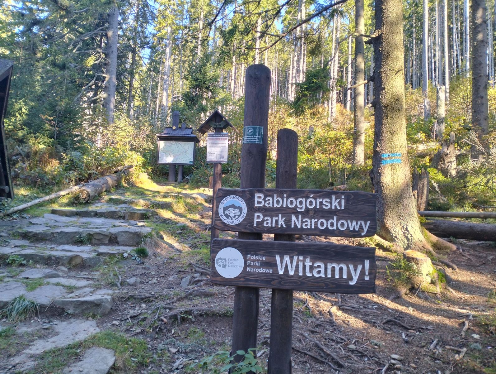 Babiogórski Park Narodowy - bilety kupione online. Są tablice informacyjne, jest altanka, ławeczki bardzo fajne miejsce do odpoczynku i zaciągnięcia informacji o tym parku.