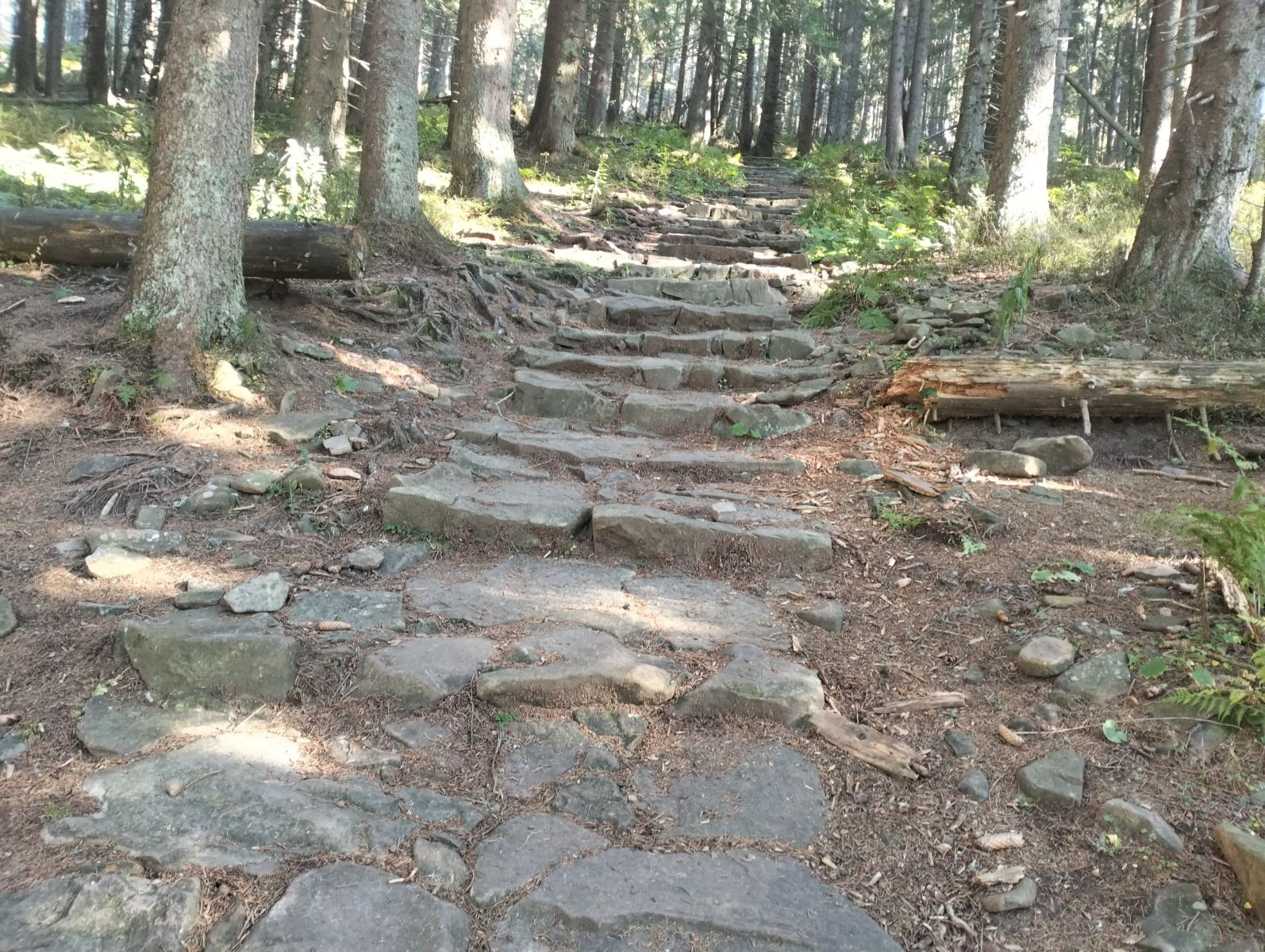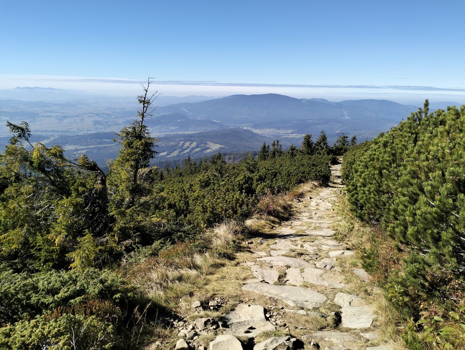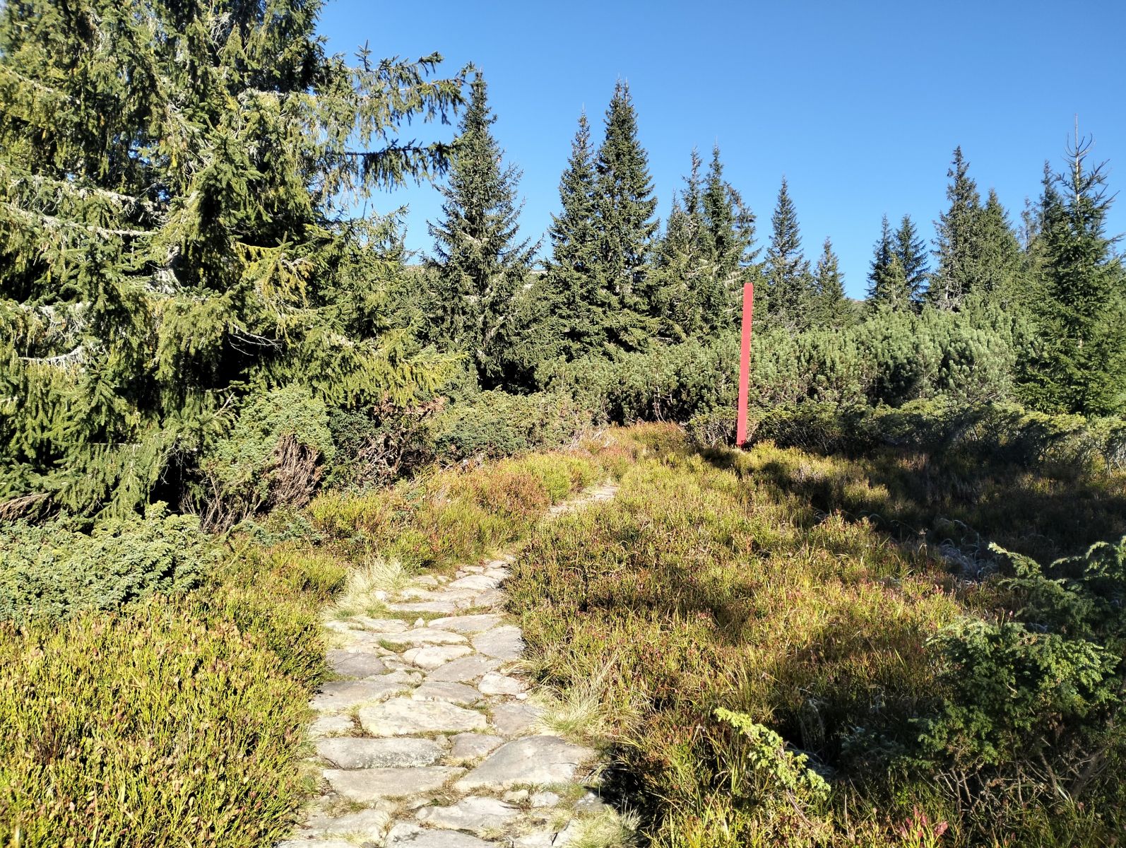 Z Babiej Góry schodzimy żółtym szlakiem, który znajduję się na terytorium Słowacji, a szlak prowadzi do Slaná Voda, my zejdziemy z niego wcześniej, zmieniając go na niebieski do Stańcowej Polany.