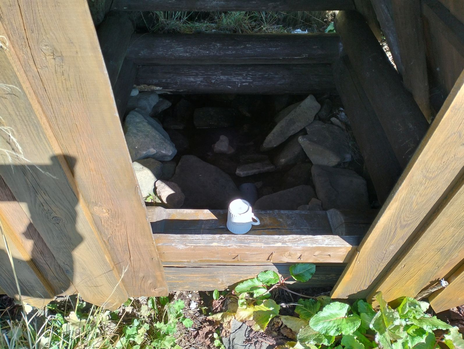 Wiata, jest i kubek gdzie można napełnić w tym źródle czyściutką wodę.