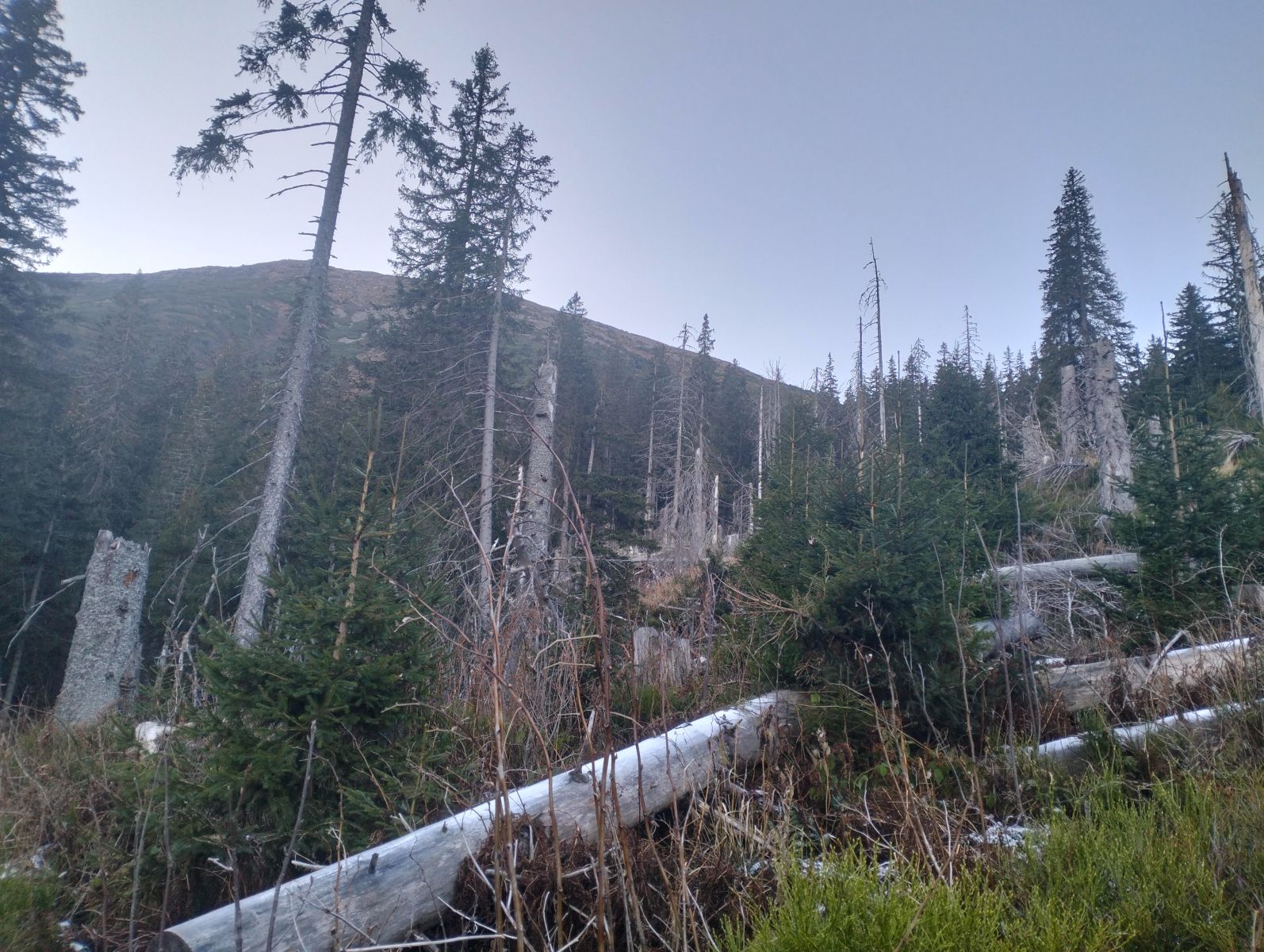 Idziemy zboczami Babiej Góry. Co w Babiogórskim Parku naturalnie upadnie... człowiek tego nie rusza.