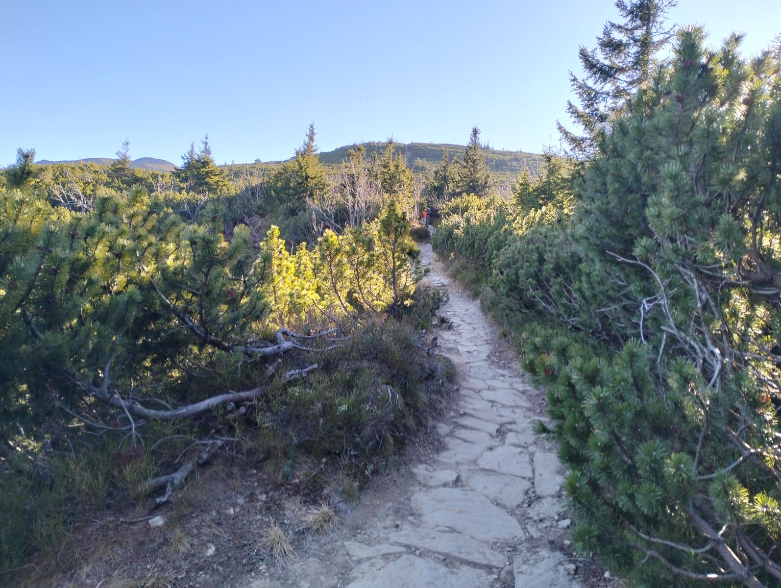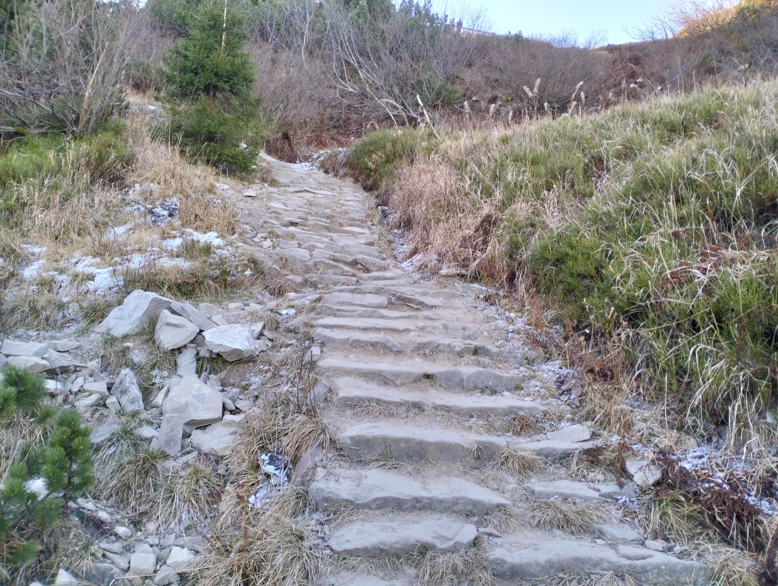 Wchodzimy w pasmo kosodrzewiny, czuć zapach.... w niektórych miejscach szlak jest oblodzony.