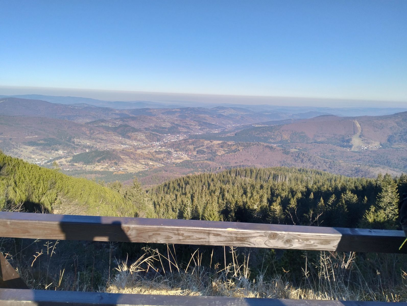 Przełęcz Brona, bardzo dużo ludzi obok nas....widoki są fantastyczne, a jaka miejscowość przed nami nie pytajcie, choć może to Zawoja?